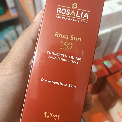 ضد آفتاب رنگی بژ روشن رزا سان spf 50 و 40 میل رزالیا مخصوص پوست خشک و حساس