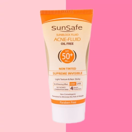 ضد آفتاب فلوئید پوست چرب سان سیف SPF50، فاقد رنگ و پارابن